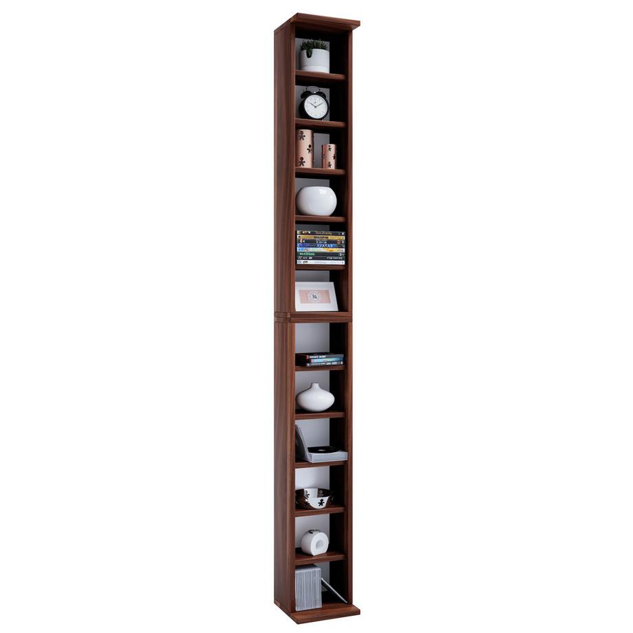 VCMHolzregal stehend | platzsparender CD Schrank für 204 CDs oder 72 DVDs | Maße: H. 180 x B. 21 x T. 20 cm | Elegantes DVD Regal stehend | Blu-Ray Regal
