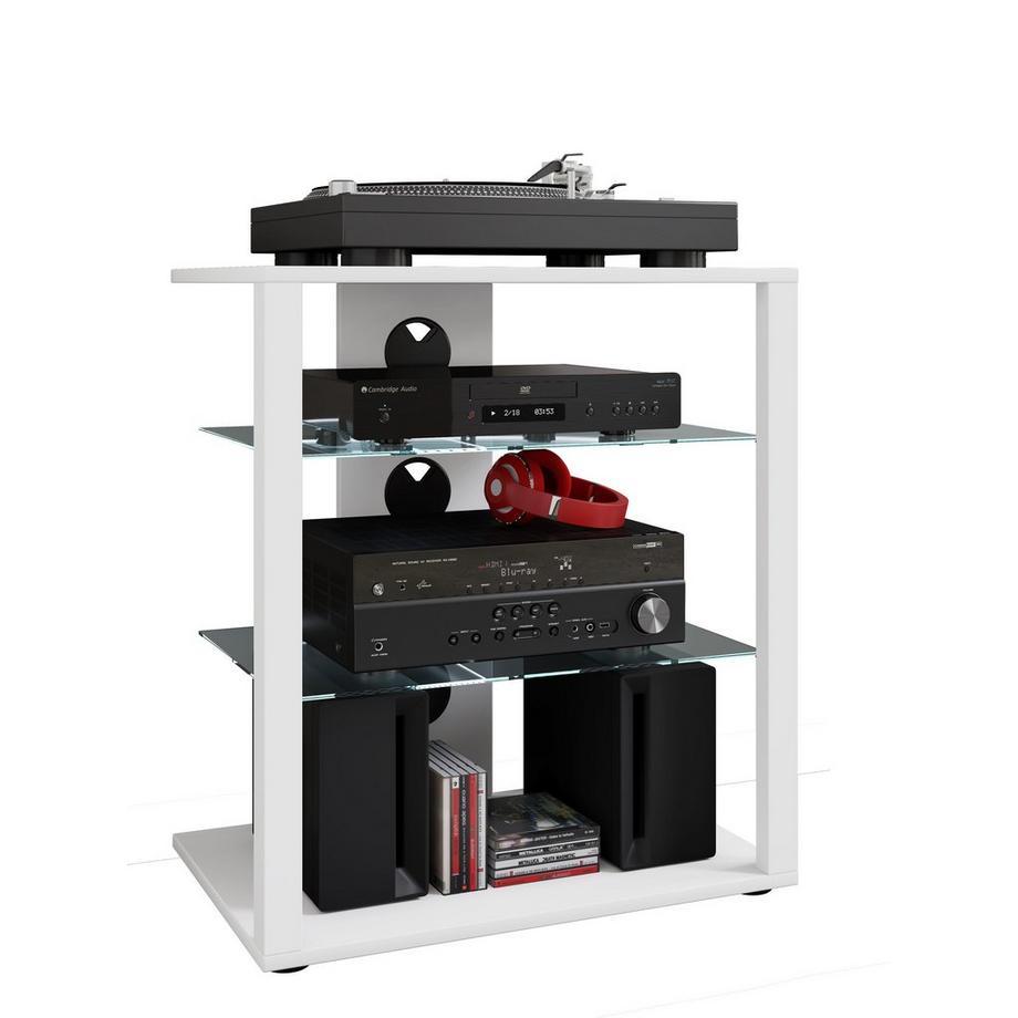 VCMHifi Holz Möbel | Rack Schrank Phono Regal | 2 Glasböden | Maße: H. 70 x B. 60 x T. 41 cm | Phono Mediaregal - Folas