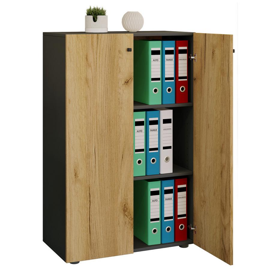 VCMBüroschrank mit 3 Fächern | moderner Aktenschrank mit Drehtüren | Maße ca. B. 70 x H. 110 x T. 40 cm – Lona 3-Fach