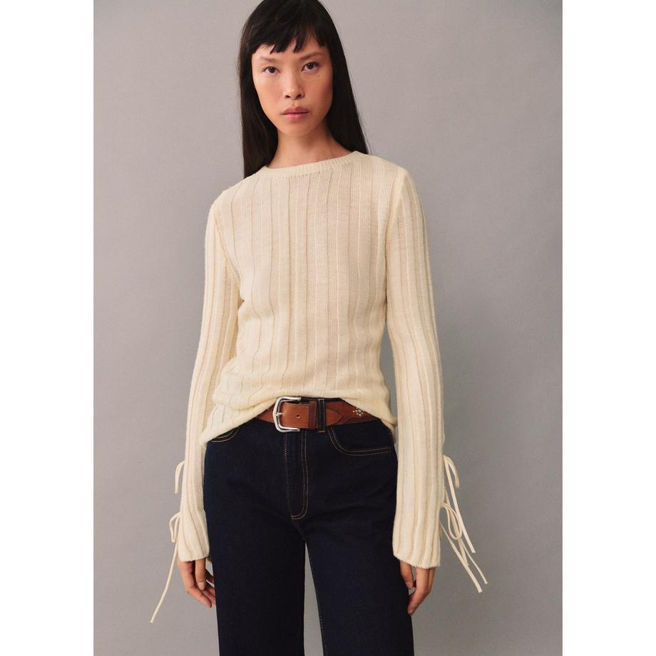 MANGOCoquette Gerippter Strickpullover mit Schleifendetails