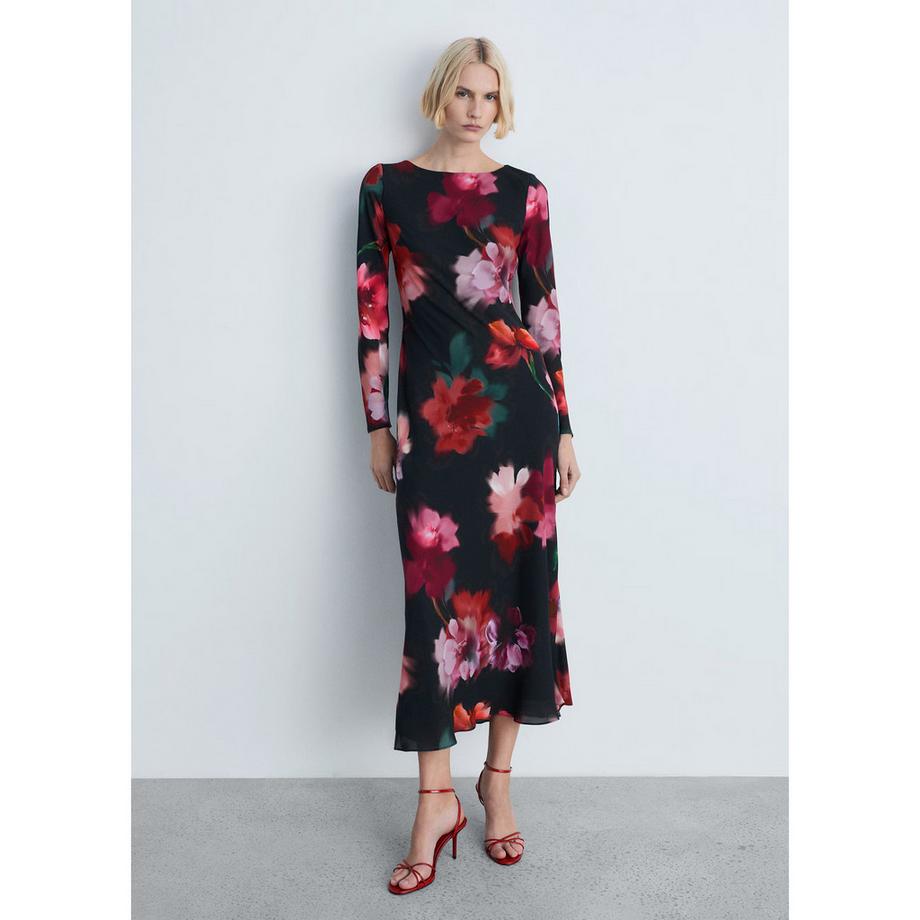 MANGOALLEGRA2 Blumenmuster Langarm Midikleid