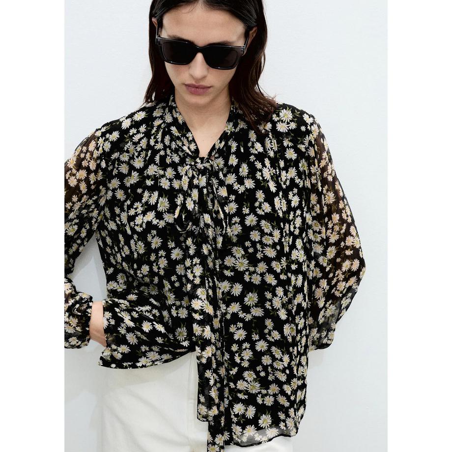 MANGOBELLE Florale Bluse mit Schleifenkragen