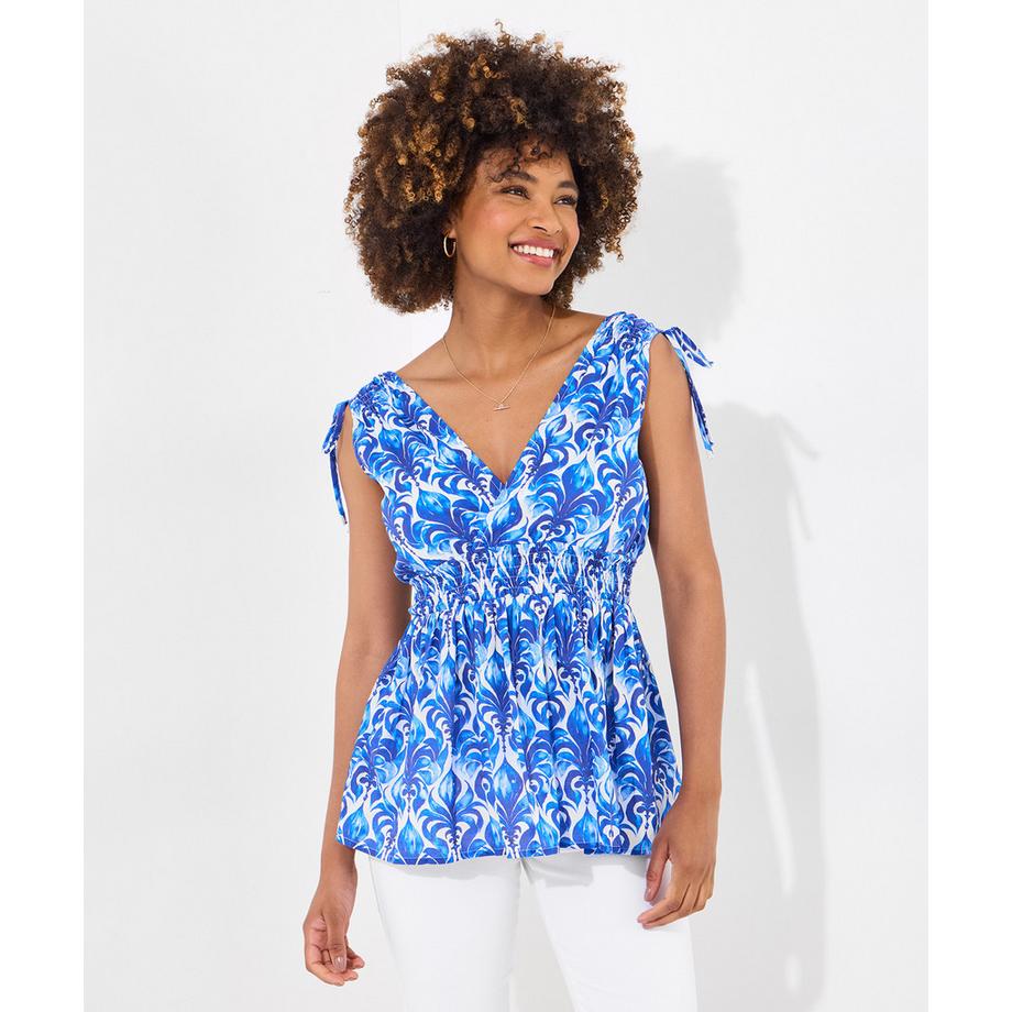 Joe BrownsBedrucktes V-Ausschnitt Top mit Bindebändern