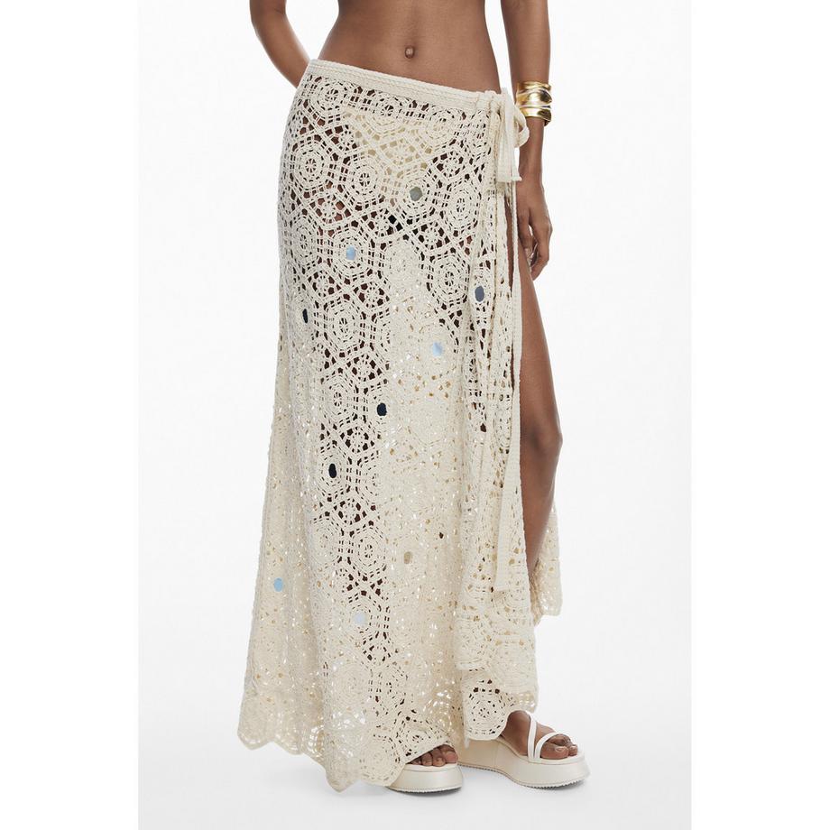 MANGOBLOCK Zweifarbiges Häkel Maxi Kleid
