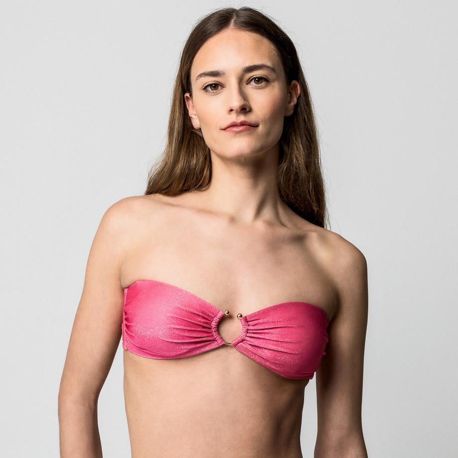 Bandeau-Bikini: Die Bandeau-Form besticht durch ein gerade geschnittenes Oberteil. Halt verleiht es durch die seitlich angebrachten Stäbchen. Er kann je nach Belieben sowohl trägerlos als auch mit Trägern getragen werden.