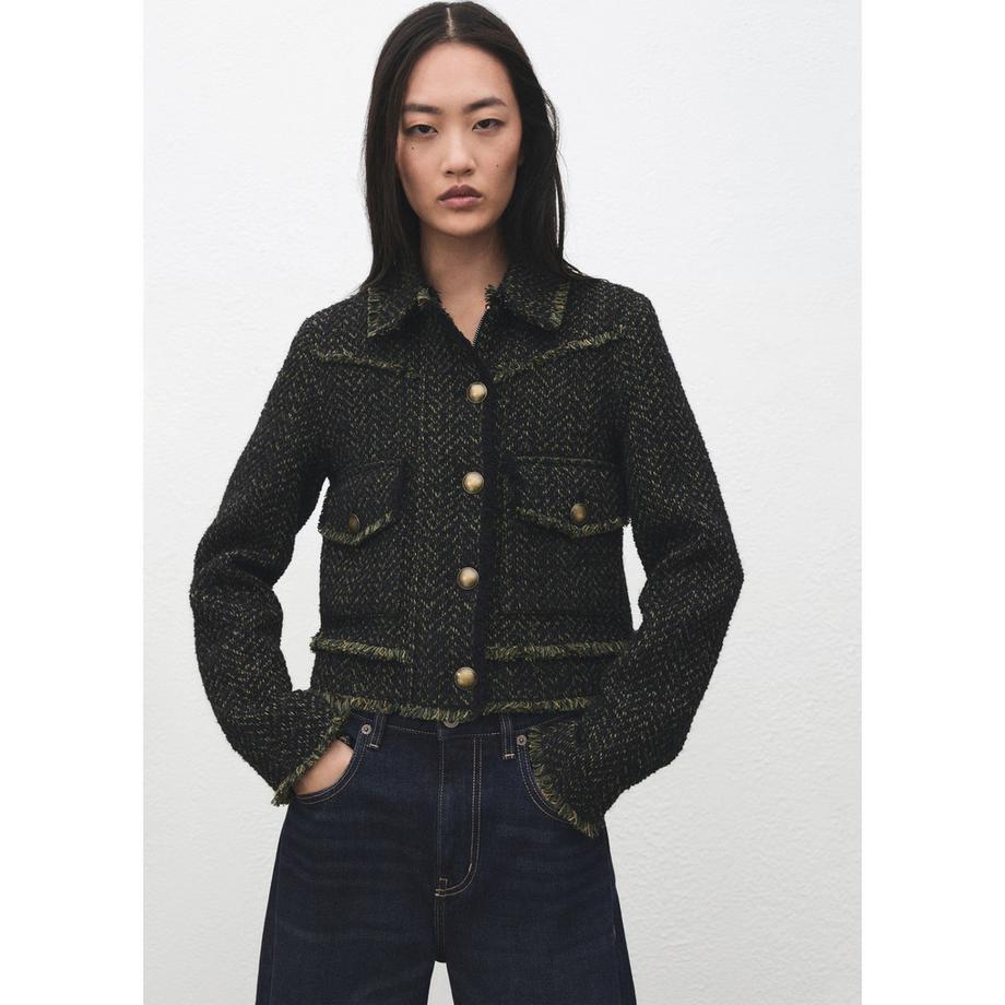 MANGOCHAKETI Tweed Jacke mit ausgefransten Details