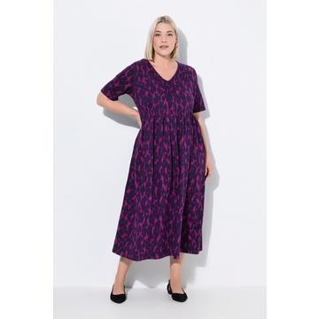 Ulla PopkenMidikleid Oversized Langarm V-Ausschnitt Muschelmuster