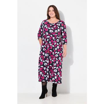 Ulla PopkenJerseykleid Blüten A-Linie Rundhals 3/4-Arm
