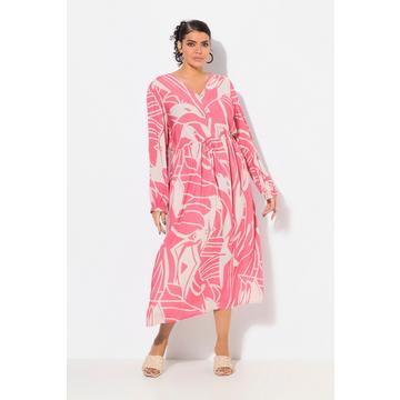 Ulla PopkenMidi Chiffon-Büste Blätter V-Ausschnitt Langarm Kleid