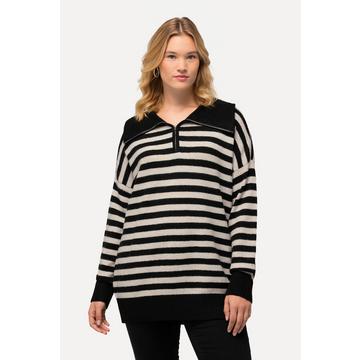 Ulla PopkenRingel Oversized Langarm Troyer mit Reissverschluss