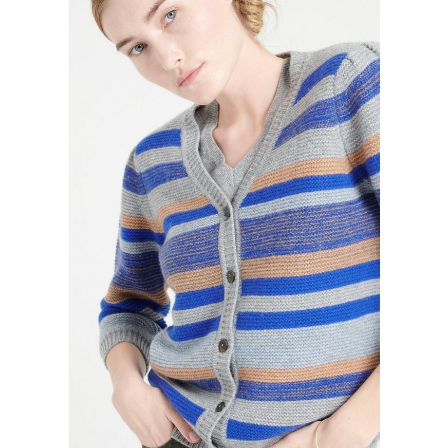 Studio Cashmere8MIA 11 Gestreifte V-Ausschnitt Strickjacke 6 Fäden