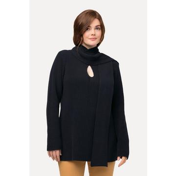Ulla PopkenPullover mit angestricktem Schal V-Ausschnitt Langarm