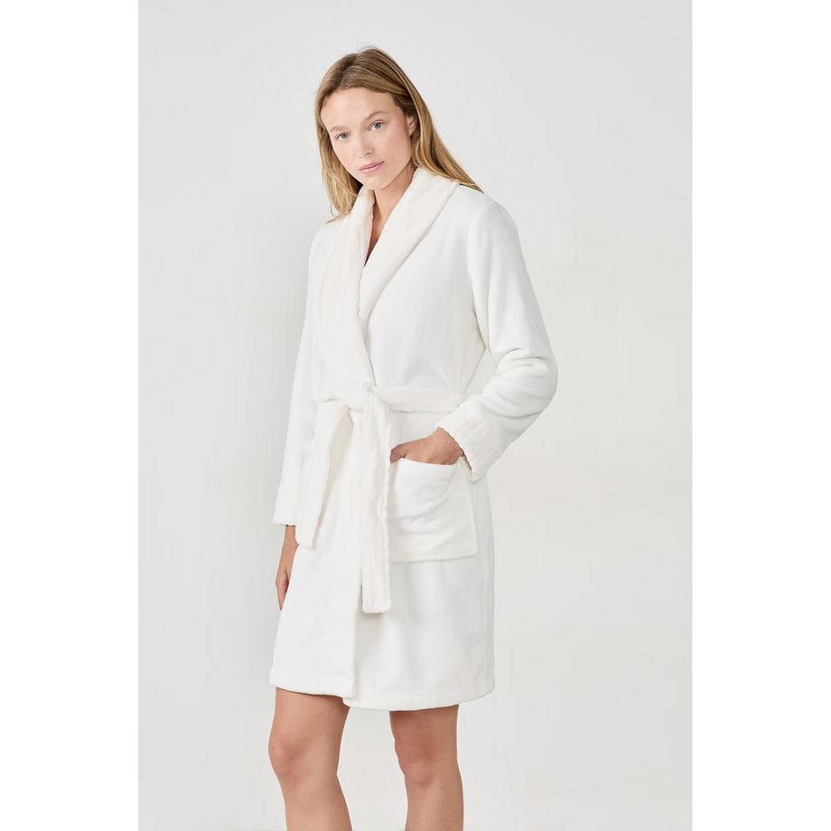 EtamSatin Morgenmantel mit Kunstfellmanschetten