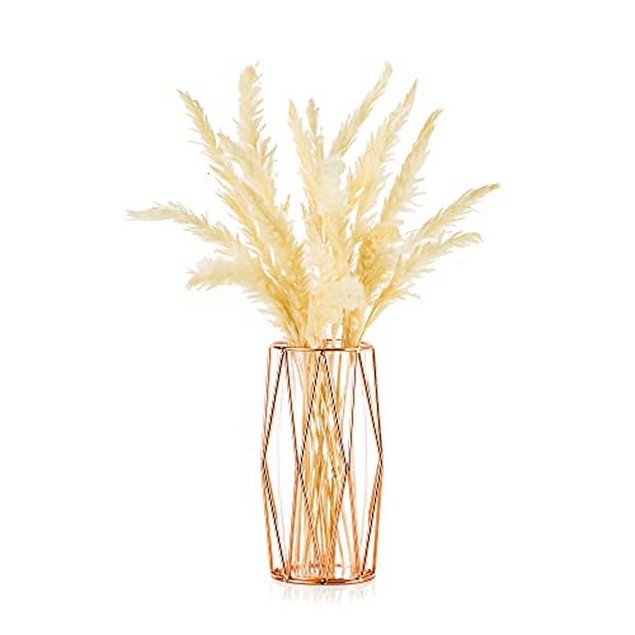 AlopiniVase für Pampasgras, Glas Vase Hohe Bodenvase mit geometrischem Metallrahmen Stand