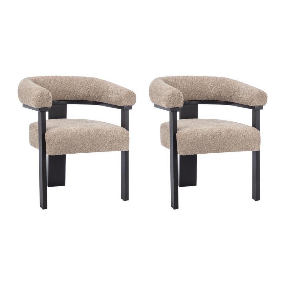 PASCAL MORABITOStuhl mit Armlehnen 2er-Set - Bouclé-Stoff & Kautschukholz - Taupe & Schwarz - LIVELIA