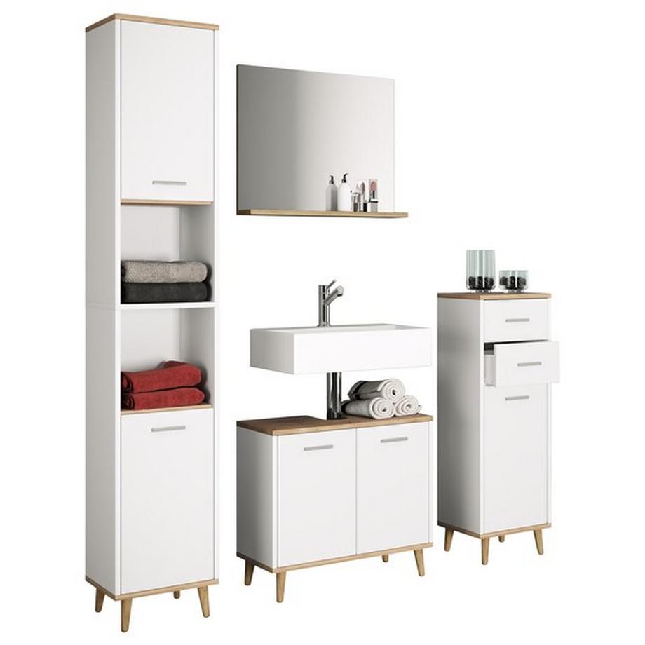 VCM4-tlg. Badmöbel Set Komplett Badschrank Unterschrank Hochschrank Flandu Ill
