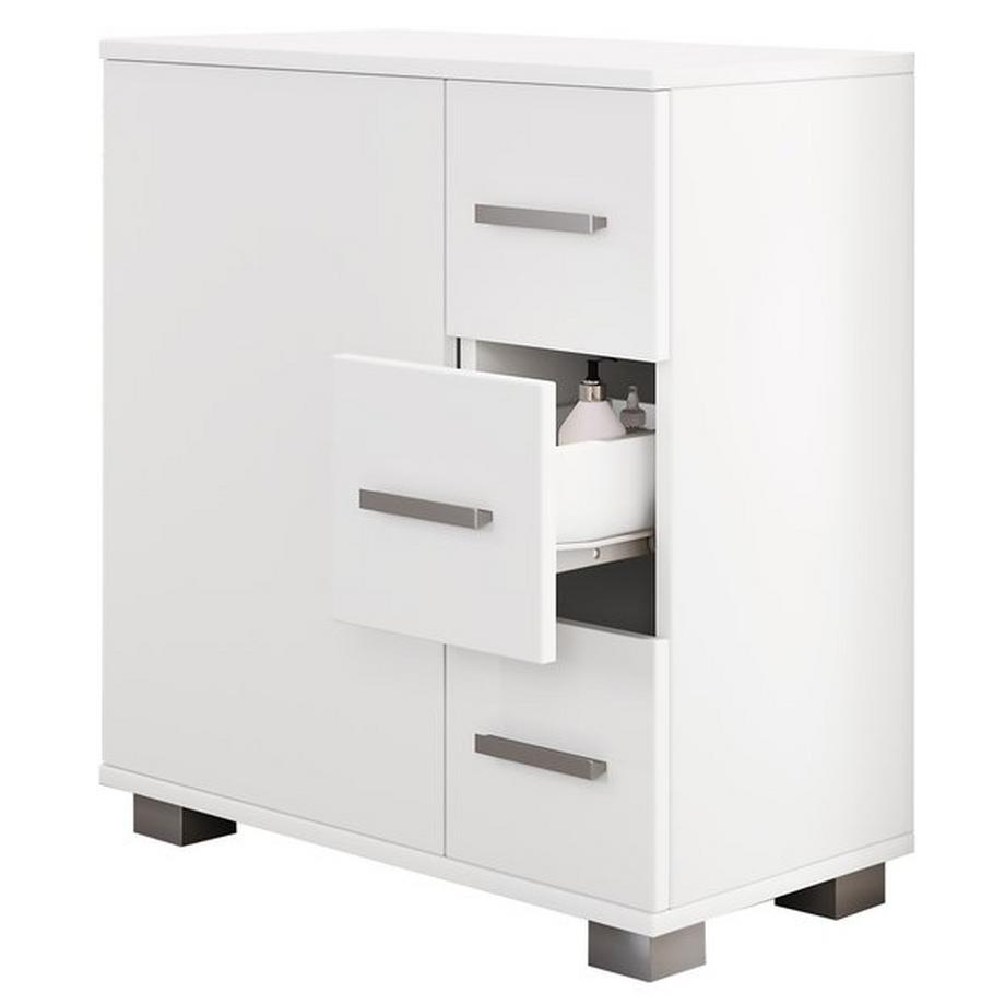 VCMHolz Midischrank | Badschrank | Maße: H. 65 x B. 60 x T. 30 cm | 3 Schubladen | 1 große Drehtür | 2 Fächer.- Zalo XL