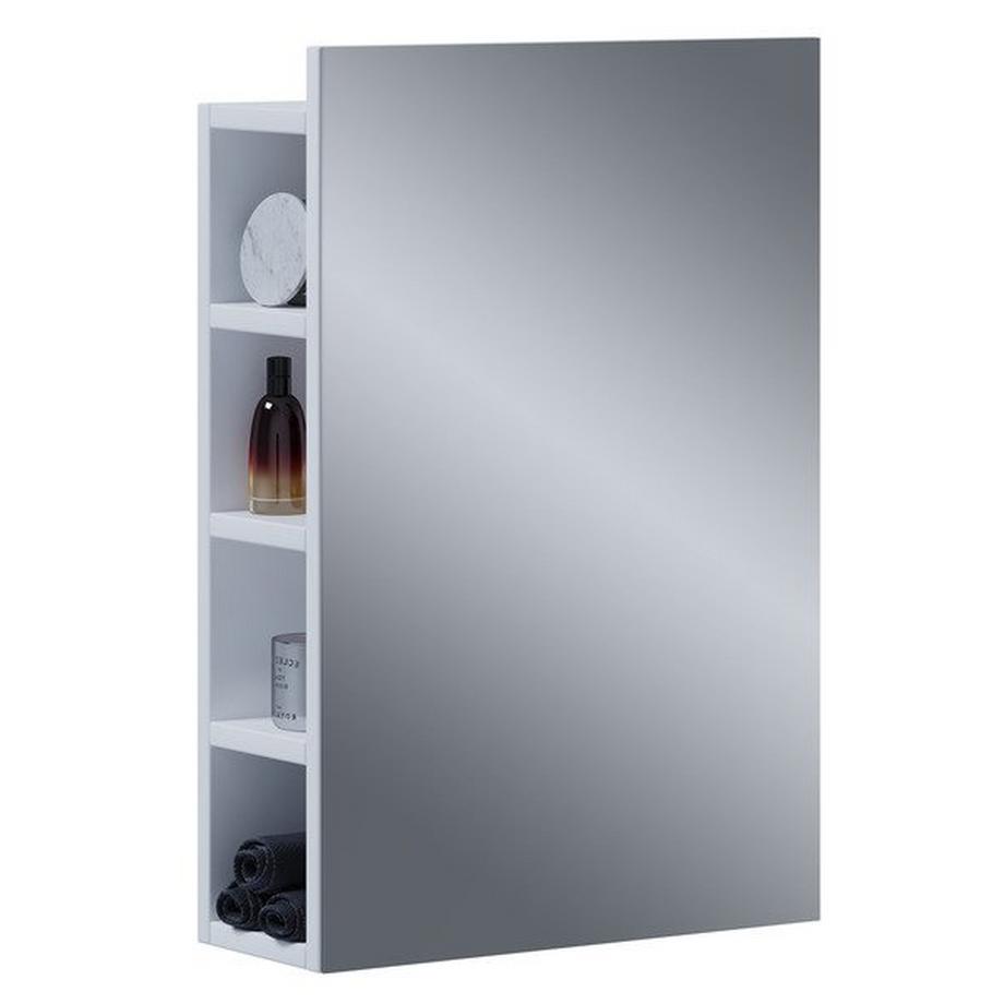 VCM4-tlg. Waschplatz Waschtisch 60 cm Badmöbel Set Waschbecken grifflose Schublade Spiegelschrank Hochschrank Silora L