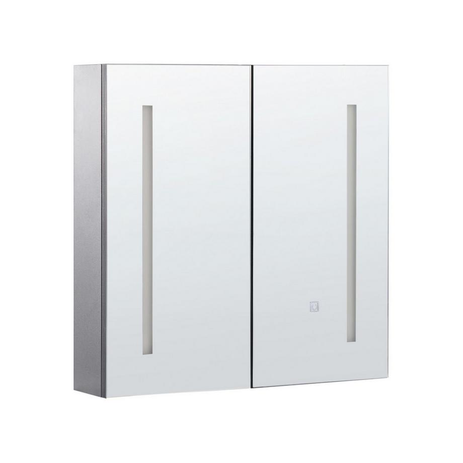 VCMBadspiegel Wandspiegel Breite 60 cm Hängespiegel Spiegelschrank Badezimmer Drehtür grifflos Beleuchtung Silora L