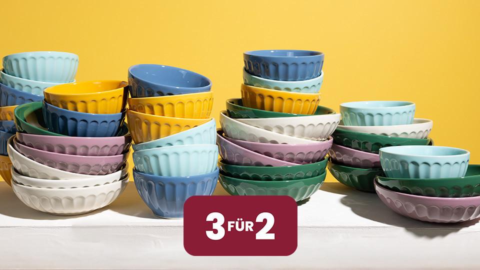 Beim Kauf von drei Manor Schalen Folk erhalten Sie den günstigsten Artikel gratis.