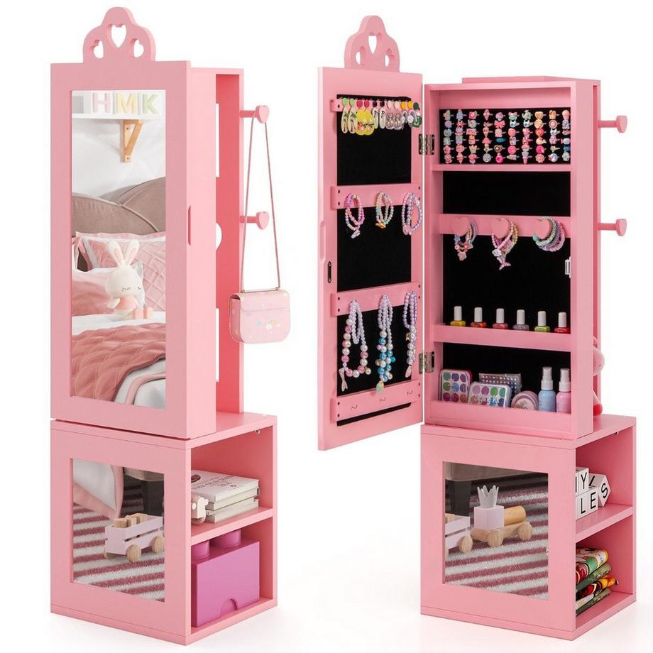 Northix3 in 1 Spiegelschrank mit Ganzkörperspiegel & Kleiderständer Kinder Schmuckschrank Rosa
