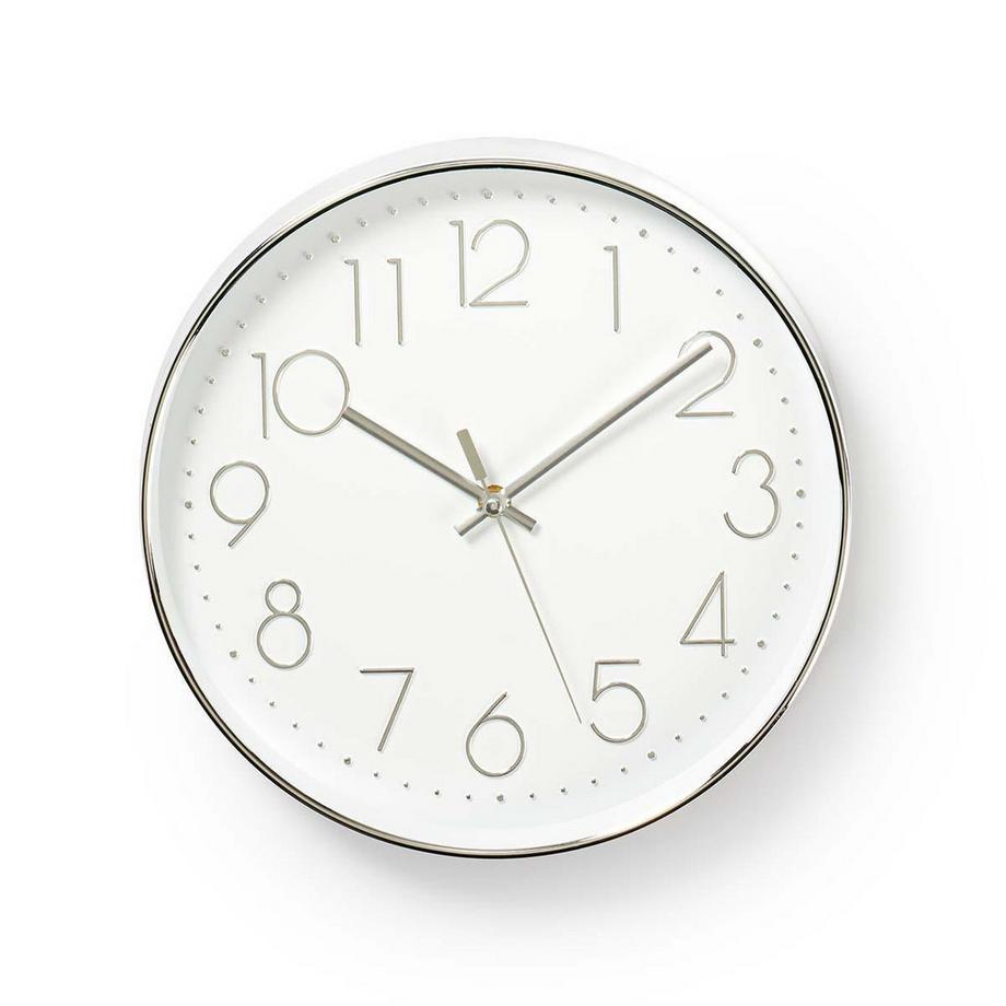 NedisWanduhr | Durchmesser: 300 mm | Kunststoff | Silber / Weiß