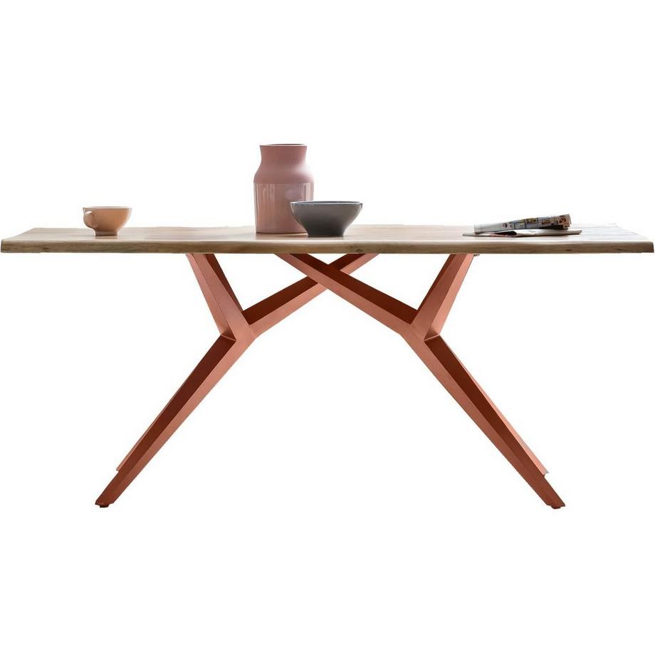 mutoniMassivholztisch 180x90 - Akazie natur - Metall - mit Baumkante