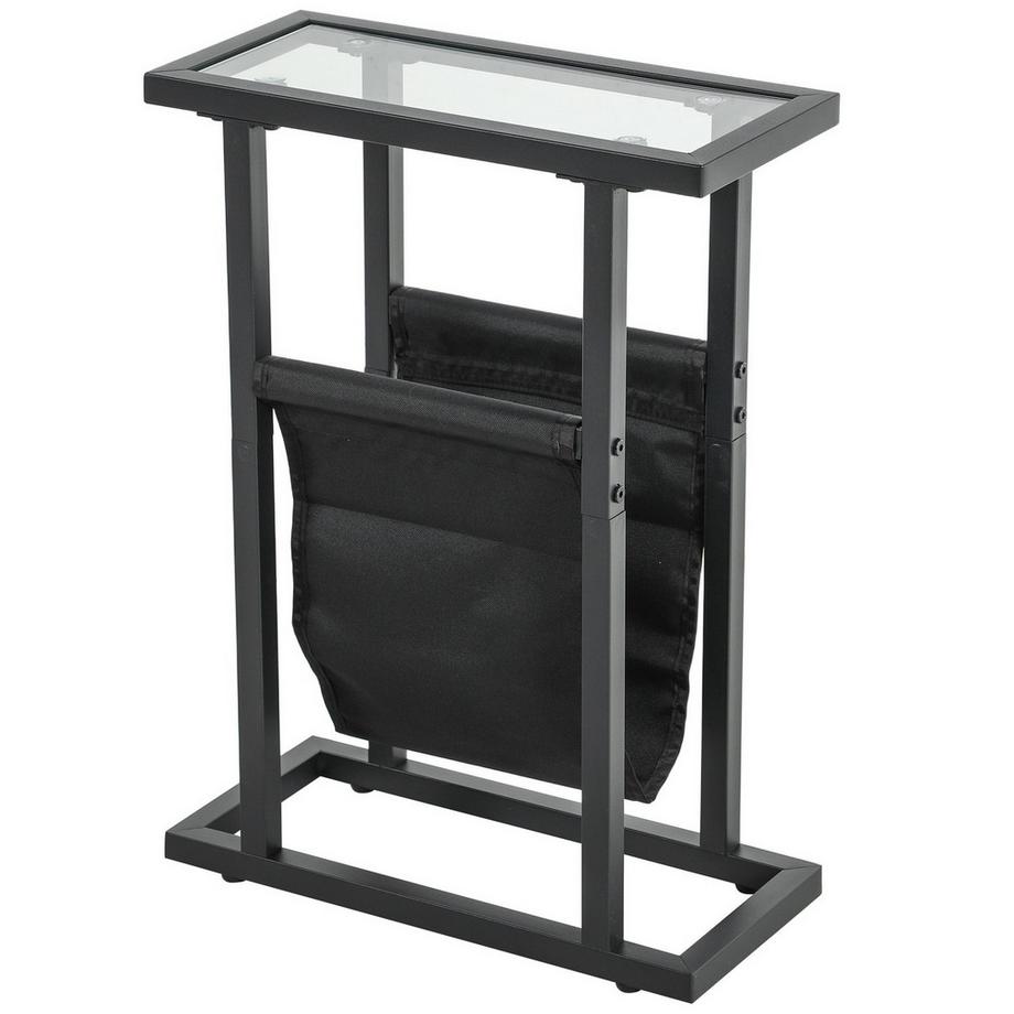 NorthioBeistelltisch Couchtisch mit Stofftasche, Metallrahmen, Kaffeetisch mit Glasplatte, Nachttisch für Wohnzimmer, Schlafzimmer, Schwarz, 40 x 18 x 55,5 cm
