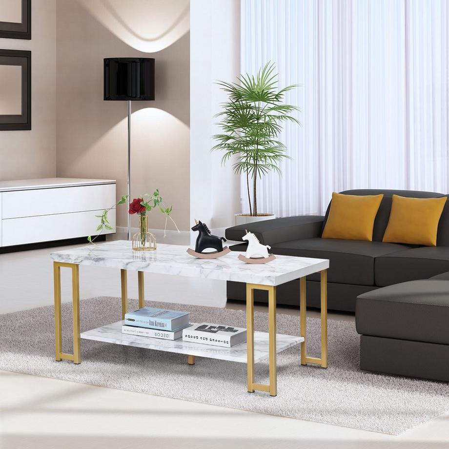 NorthixCouchtisch Beistelltisch Sofatisch Anstelltisch Konsolentisch Kaffeetisch Golden und Weiß