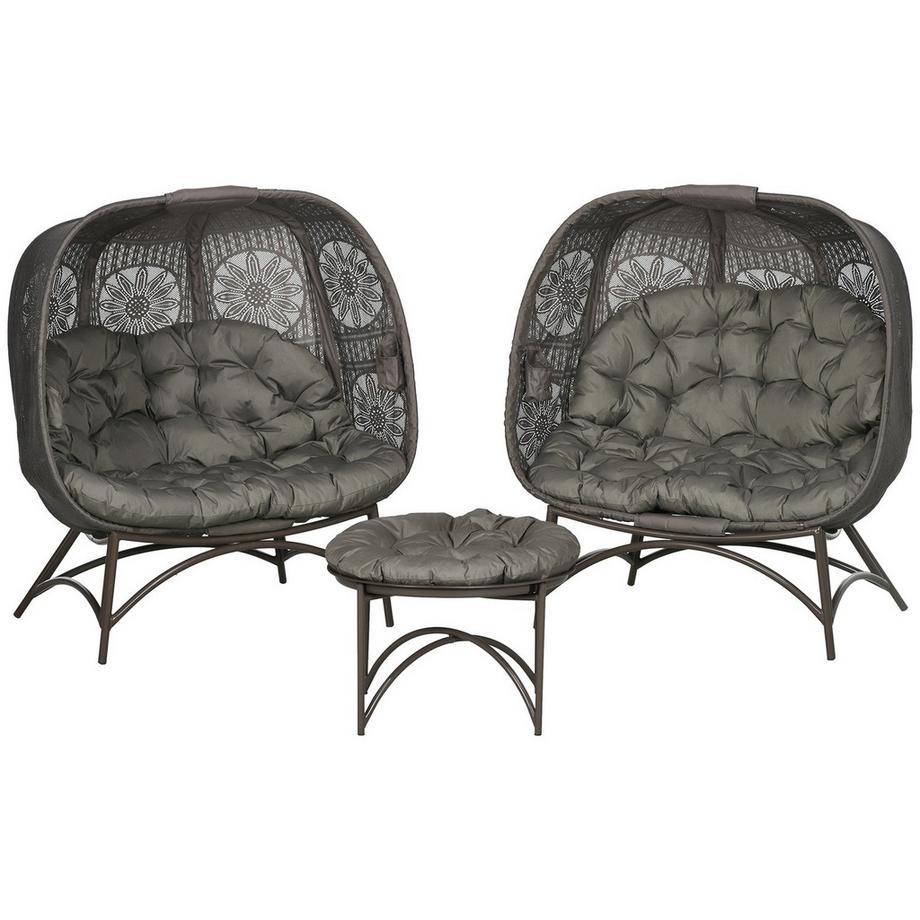 Northio3Tlg. Gartenstuhl-Set, Korbstuhl Mit Faltbarem Sitzkorb, Couchtisch, Kissen, Loungesessel Für Terrasse, Balkon, Stahl, Sand