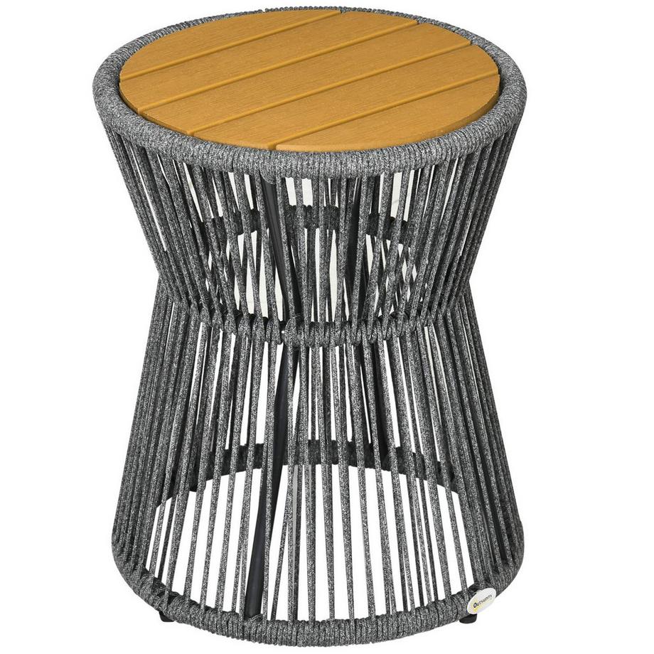 NorthioGartentisch Bistrotisch Kaffeetisch Mit Kunststofftischplatte Mit Verstellbaren Füßen, Für Terrasse, Dunkelgrau+Natur