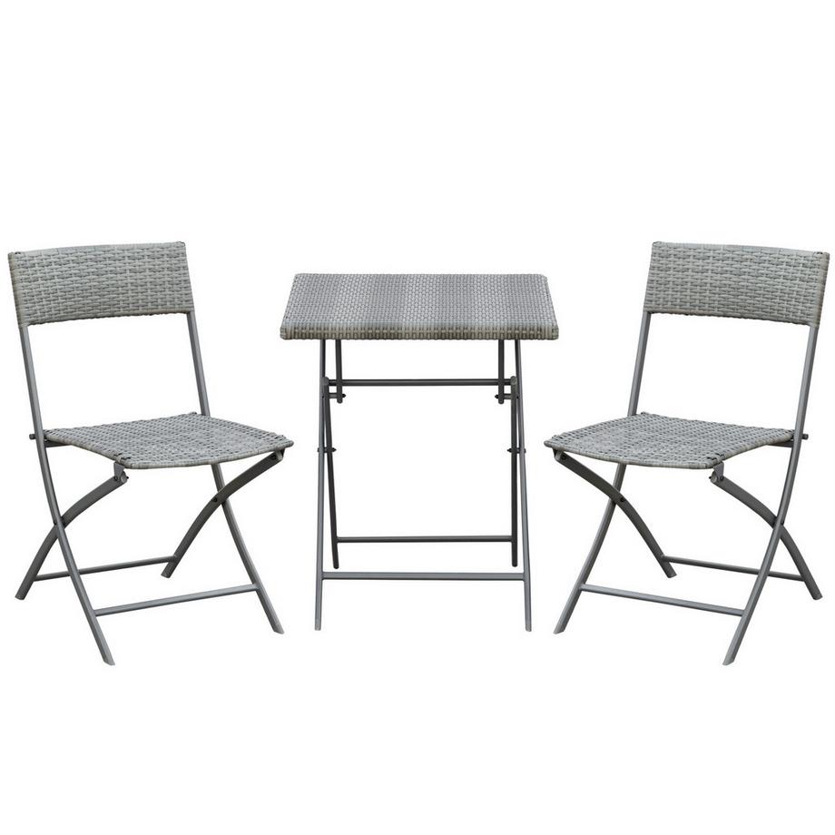 NorthioPolyrattan Bistroset 2 Personen Sitzgruppe Rattan Gartenmöbel Grau