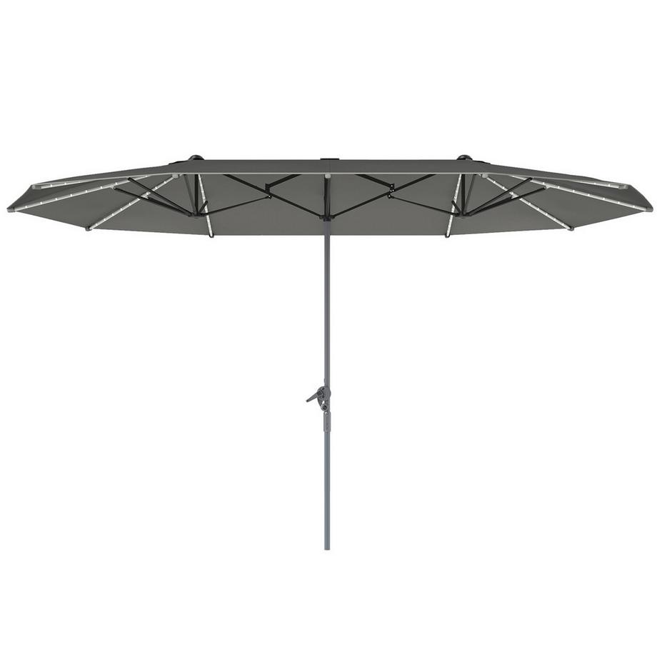 NorthioDoppelsonnenschirm mit Solar LED Lichtern 451x267 cm Aluminium UV 50+ Sonnenschirm mit Handkurbel, Balkonschirm windfest Marktschirm Sonnenschutz für Strand Balkon Garten, Dunkelgrau |