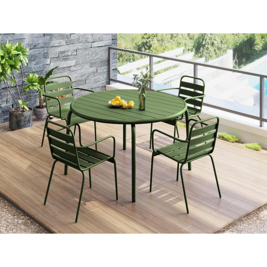 Vente-uniqueGarten-Essgruppe: Tisch D. 110 cm + 4 stapelbare Sessel - Metall - Khaki - MIRMANDE von MYLIA
