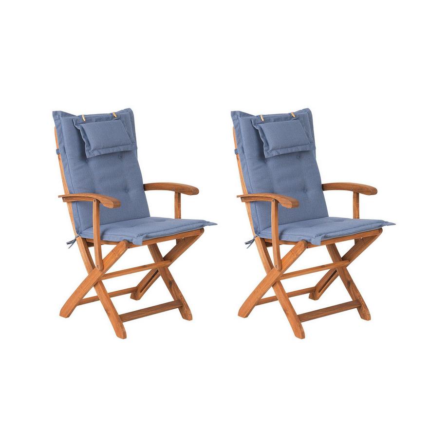 BelianiSet mit 2 Stühlen und Sitzkissen aus Akazienholz AMANTEA