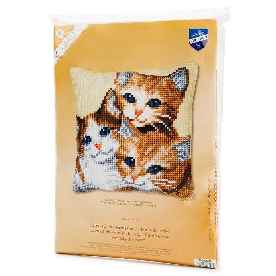 Kreuzstichkissen, 3 junge Katzen