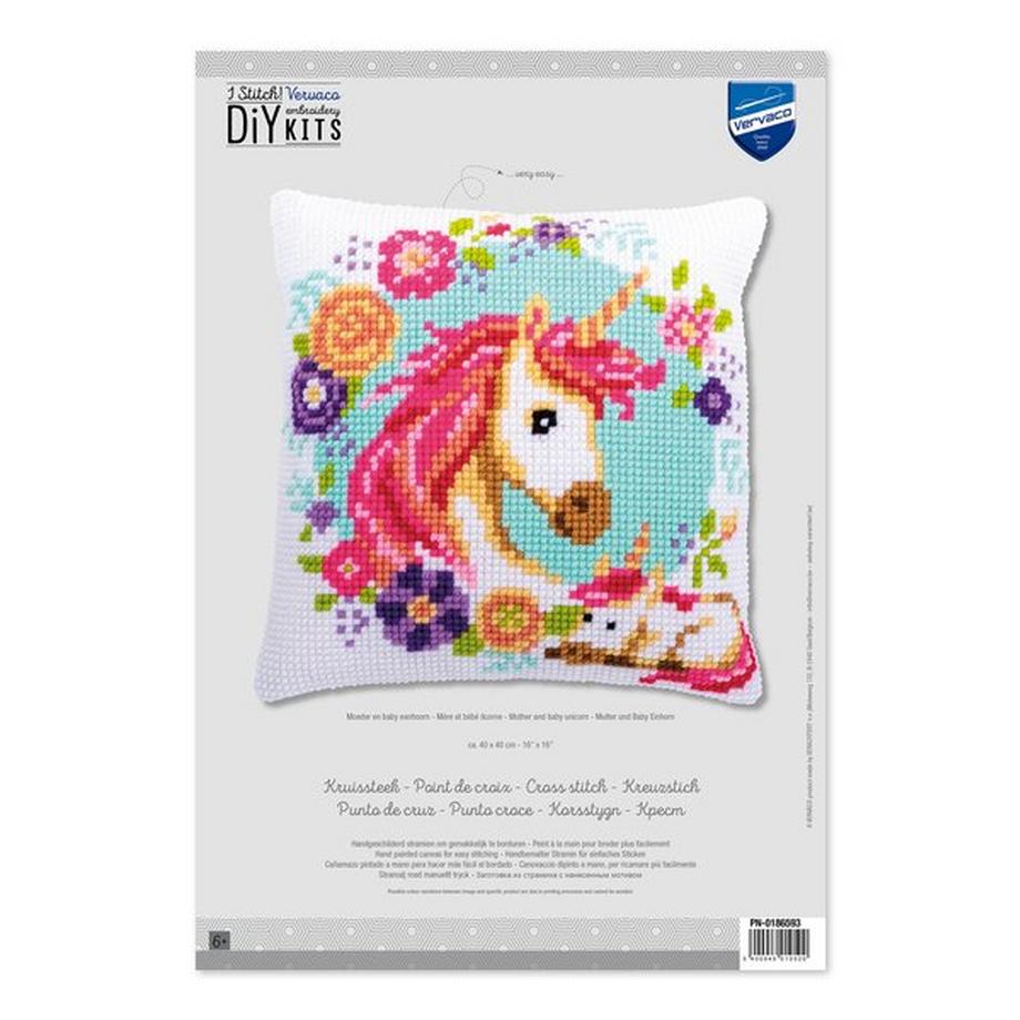 VervacoKreuzstichkissen, Mutter und Baby Einhorn