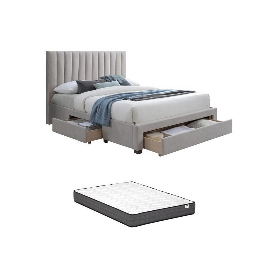 Vente-uniqueBett mit 3 Schubladen + Matratze - 140 x 200 cm - Stoff - Beige - LIAKO