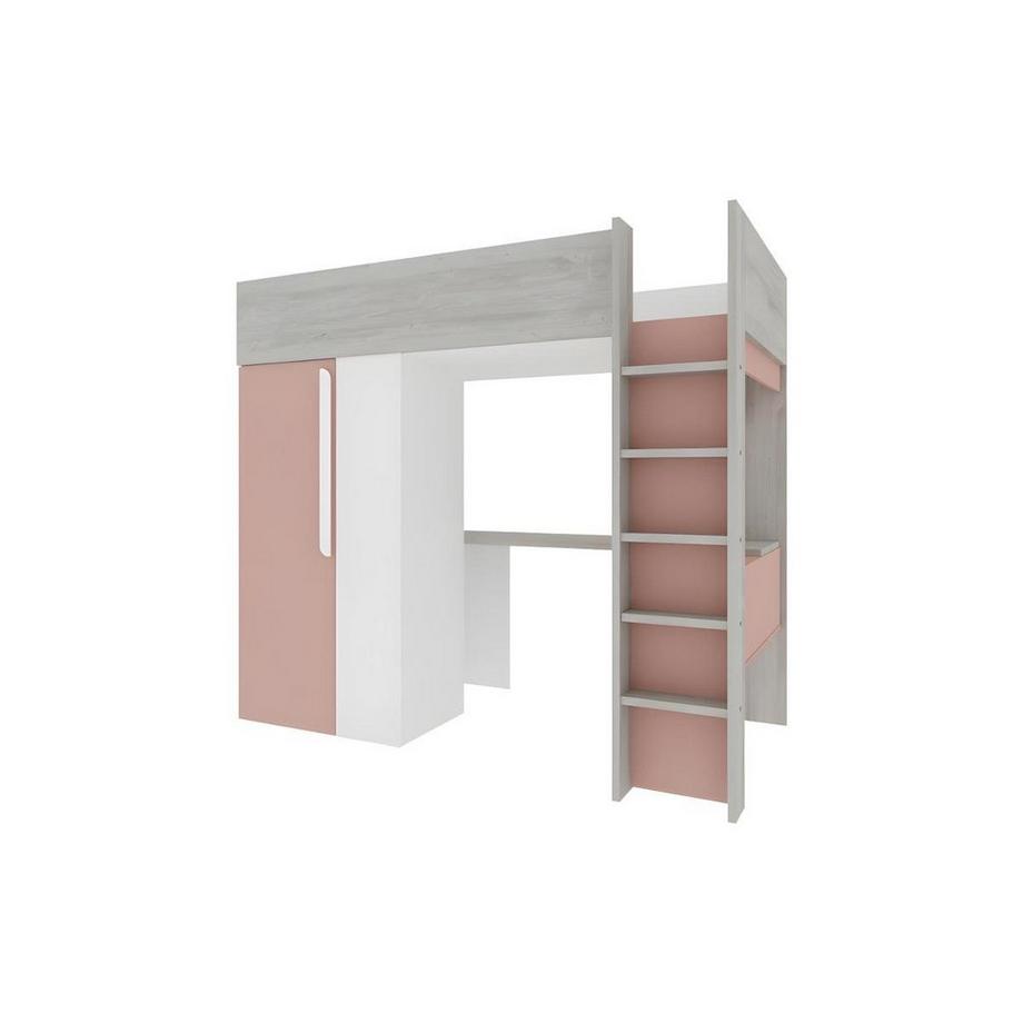 Vente-uniqueHochbett mit Schreibtisch Kleiderschrank Rosa NICOLAS