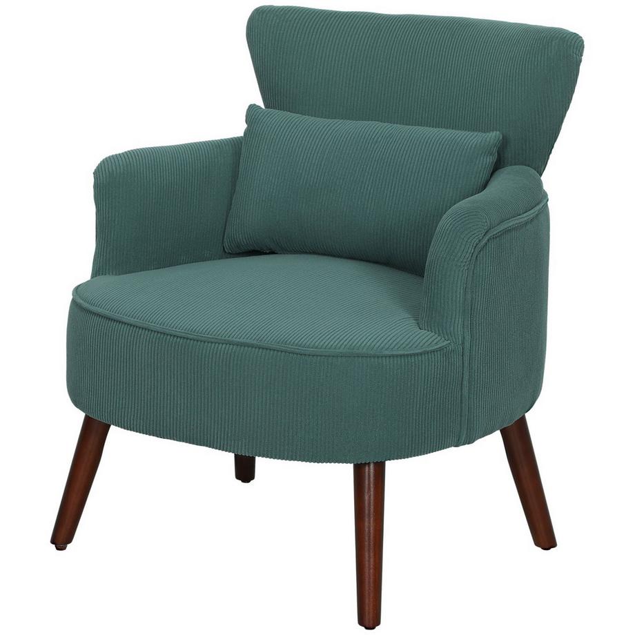 NorthioSessel mit Rückenlehne, abgerundeten Armlehnen, Gepolstert Loungesessel mit Kordoptik, Holzbeine, für Schlafzimmer, Wohnzimmer, bis 120 kg, Dunkelgrün