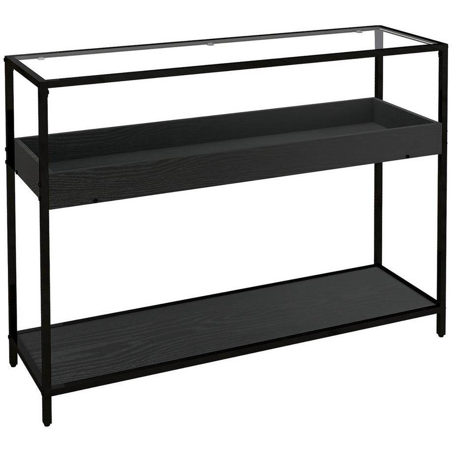 NorthioKonsolentisch Mit 2 Regalen Flurtisch Mit Glasplatte, Schuhregal, Stahl, Schwarz, 100X30X78 Cm