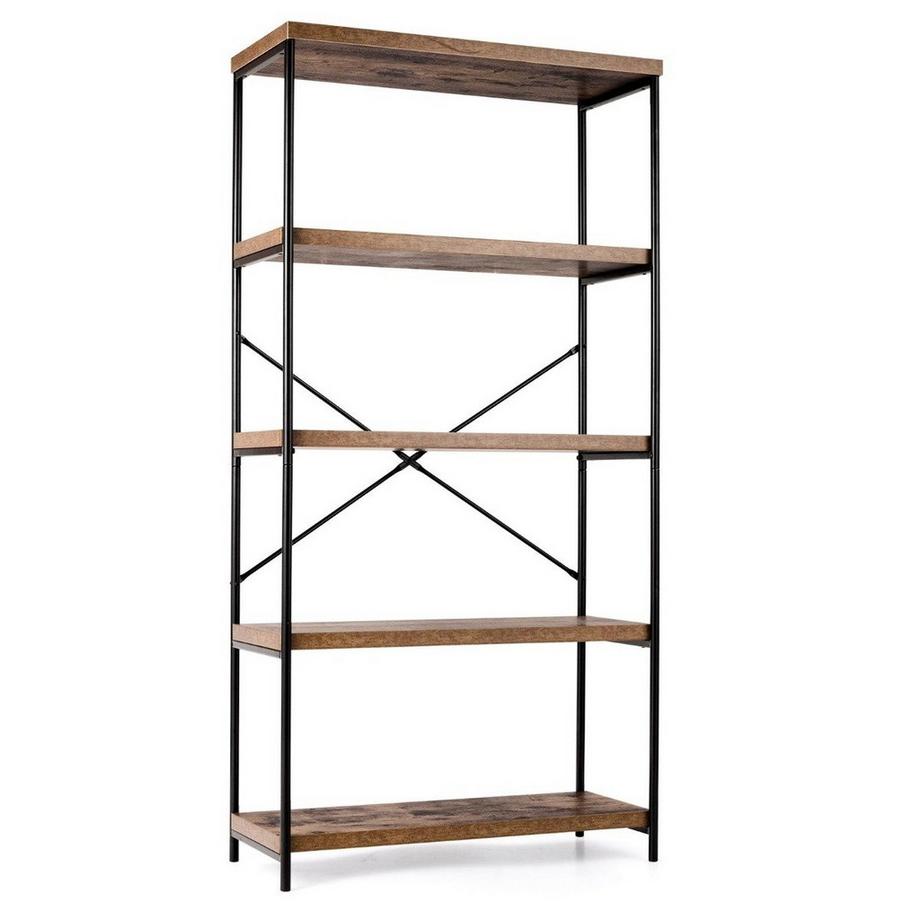 NorthioBücherregal mit 5 Ebenen & Metallrahmen & Industrie-Design Standregal Büroregal Braun
