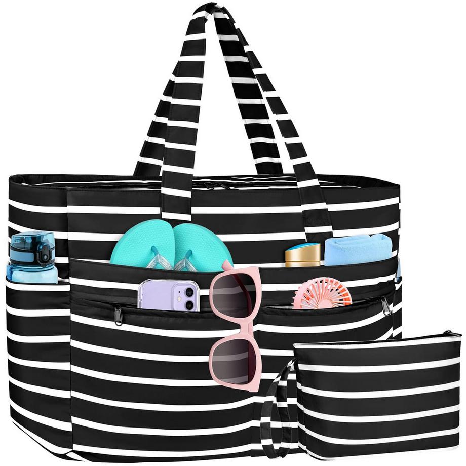 Only-bags.storeGroße gestreifte wasserdichte Strandtasche mit Reißverschluss