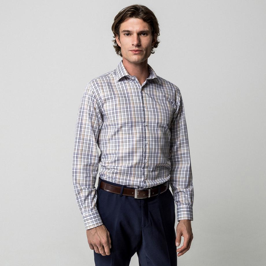 Manor ManHerren Kariertes Langarmhemd Regular Fit