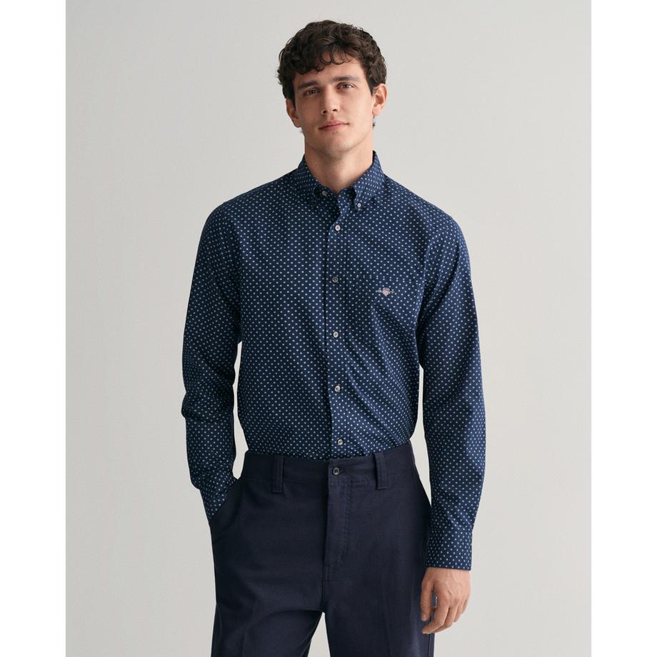 GANTREG Micro Print Regular Fit Langarmhemd