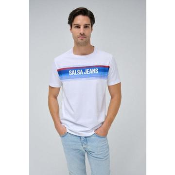 SalsaV-Neck Cotton Lycra T-Shirt Metal Badge