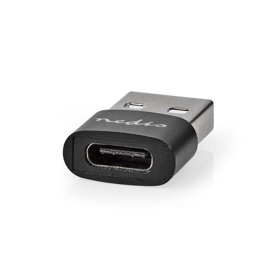 NedisUSB-A Adapter | USB 2.0 | USB-A Stecker | USB-C™ Buchse | 480 Mbps | Rund | Vernickelt | Schwarz | Box