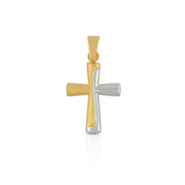 Anhänger Kreuz Bicolor Gelb-/Weissgold 750, 31x15x2mm