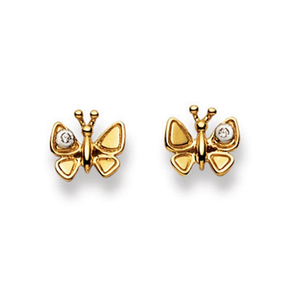 MUAU SchmuckOhrstecker Schmetterling Bicolor Gelb-/Weissgold 750 Zirkonia 8mm