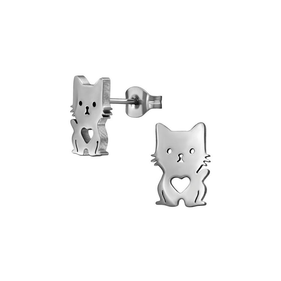 MaxteOhrstecker Katze mit Herz aus Edelstahl